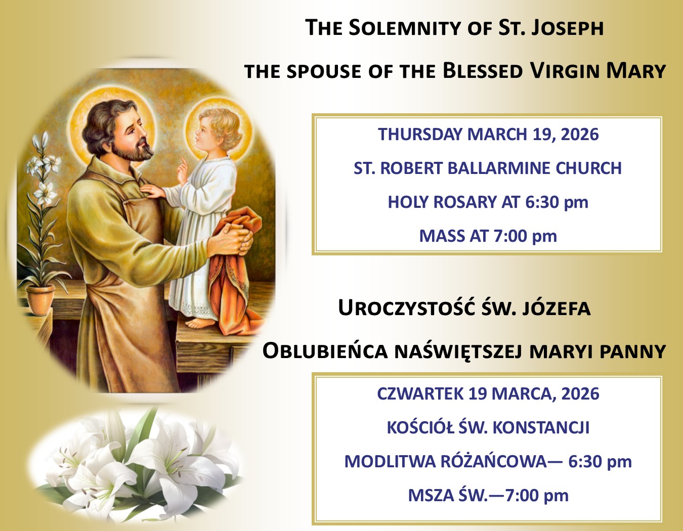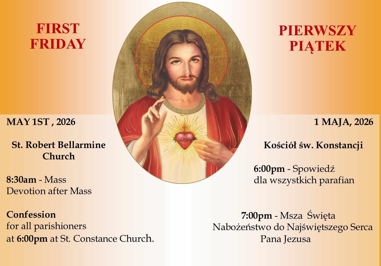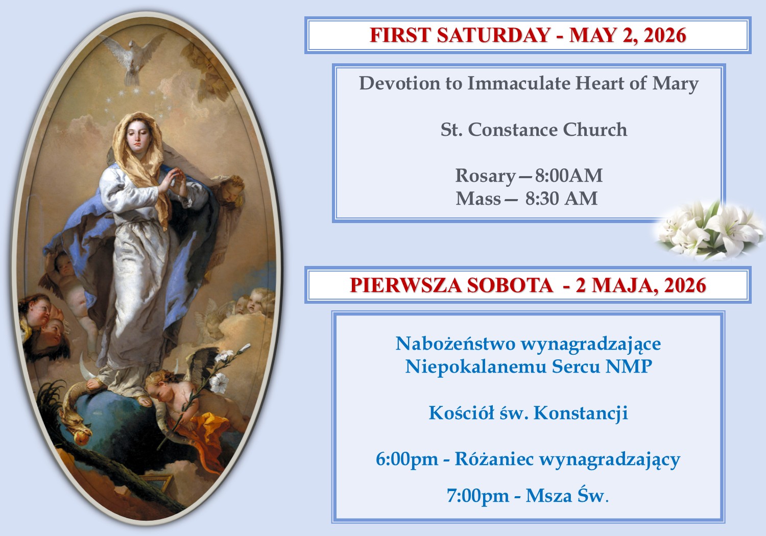 Saturday – 5:00pm (Sunday Vigil Mass)